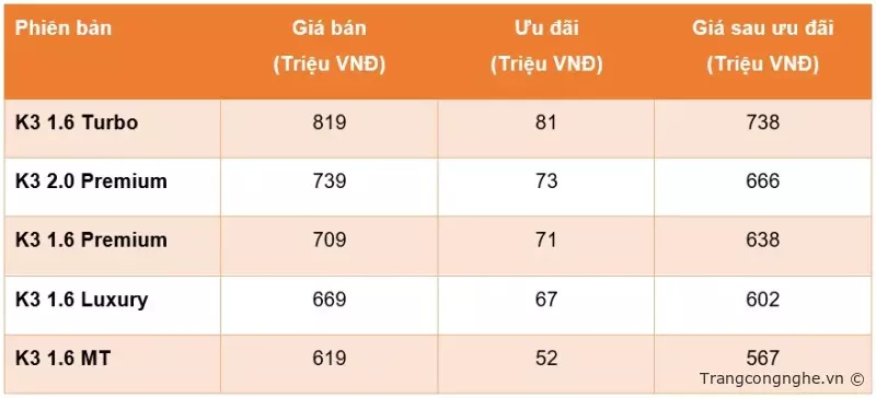Đặc biệt, với chương trình ưu đãi này, giá bán của Kia K3 chỉ từ 567 triệu đồng, trong khi giảm giá đối với Kia Sportage lên đến 110 triệu đồng. Đây là mức giảm giá hấp dẫn giúp khách hàng có cơ hội sở hữu những chiếc xe Kia chất lượng với giá cả hợp lý.