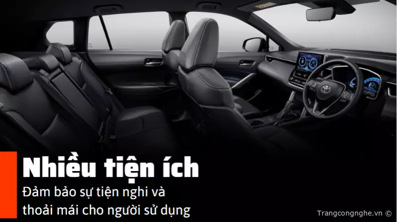 Ngoài ra, không gian nội thất của Corolla Cross còn được trang bị các tiện nghi tiện ích như: Hệ thống âm thanh cao cấp, cổng sạc USB, cốp sau rộng rãi, cửa sổ trời để tạo cảm giác rộng rãi và thoáng đãng cho người sử dụng. Tất cả những tiện ích này đều được thiết kế để mang lại trải nghiệm lái xe tốt nhất cho người sử dụng.