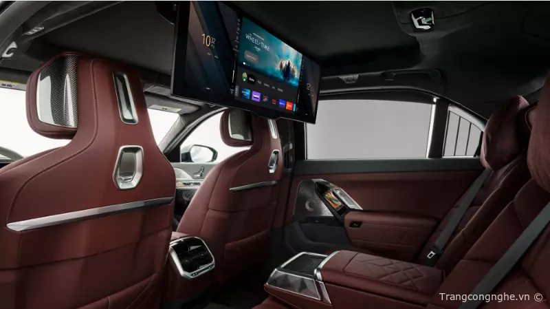 Đối với hàng ghế sau trên BMW 7-Series 2023, hành khách sẽ được trải nghiệm một không gian sang trọng và tiện nghi hơn. Xe được trang bị màn hình trần lớn với kích thước 31 inch và độ phân giải 4K, tạo nên một không gian giải trí tuyệt vời với chế độ Theater Mode. Ngoài ra, các hành khách còn có màn hình cảm ứng 5,5 inch trên tựa tay ghế, cho phép điều chỉnh các tính năng và trang bị của xe. Hệ thống âm thanh Diamond Surround Sound 36 loa cũng là một trong những tính năng đáng chú ý khác được trang bị trên xe.