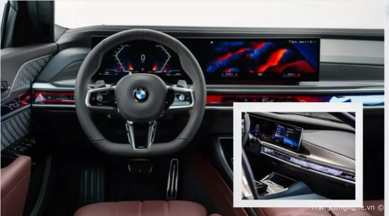 Cabin của BMW 7-Series 2023 được thiết kế rộng rãi, thoải mái và hiện đại, được trang bị nhiều công nghệ tiên tiến. Màn hình cong khổng lồ kết hợp giữa cụm đồng hồ kỹ thuật số 12,3 inch và màn hình cảm ứng trung tâm 14,9 inch chạy hệ điều hành mới nhất iDrive8, giúp người lái dễ dàng truy cập các tính năng thông tin giải trí và kết nối 5G cho phép truy cập các ứng dụng trực tuyến như YouTube. Đây là một không gian nội thất đẳng cấp, sang trọng và đầy công nghệ của BMW 7-Series 2023.![]()