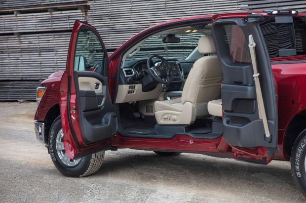 Giống như trên Ford, chiếc King Cab của Nissan được trang bị cửa bản lề phía sau, và chỉ có thể được mở sau khi cửa trước mở ra. Các bản lề phía sau có khả năng xoay 170 độ để dễ dàng cho hành khách di chuyển vào phần cabin phía sau.
