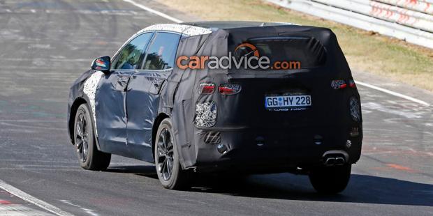 Mẫu Hyundai SantaFe 2018 bất ngờ xuất hiện trên đường đua Nurburgring, Đức. Xe có nhiều thay đổi trong thiết kế ngoại thất và kích thước so với các phiên bản trước.