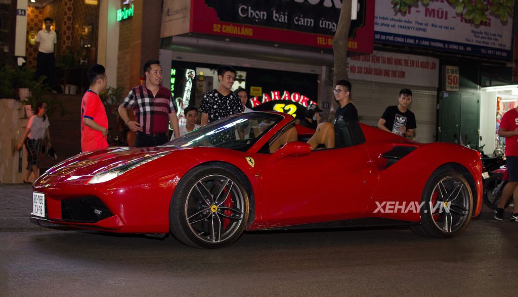 Chiếc Ferrari 488 Spider màu xanh chỉ vừa mới thông quan tại cảng Hải Phòng vài ngày trước nay đã được cho đi dạo phố.