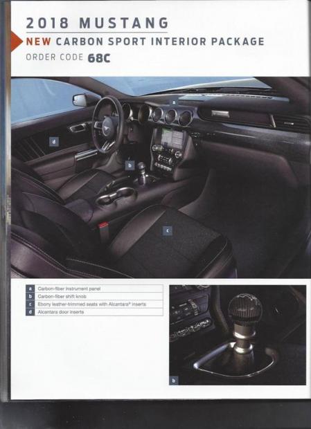 Về nội thất, những điểm nổi bật trên Ford Mustang 2018 bao gồm sử dụng rộng rãi vật liệu sợi carbon trên bảng điều khiển và núm điều chỉnh, ghế ngồi được làm từ gỗ mun và bọc da Alcantara, loại da này tiếp tục được sử dụng trên các tấm cửa.