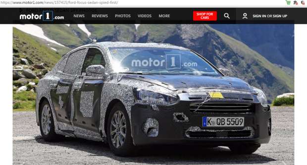 Mới đây, một nguyên mẫu thử ngiệm của Focus sedan đã bị bắt gặp, chiếc sedan ngụy trang kín hoàn toàn với những tấm bọc che thân. Tuy nhiên, cột B của chiếc xe vẫn hiện lên khá rõ ràng, và nó cho thấy dường như phần mui xe của Focus sedan có thiết kế giống phiên bản hatchback trước đây, với phần mũi xe thấp và đèn pha mỏng.