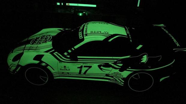 Để tạo ra hiệu ứng phát quang trong bóng tối, hãng độ sử dụng một chiếc Porsche với thân xe màu trắng tiêu chuẩn, phủ lên nó màu sơn đen mờ. Sau đó, công ty sử dụng phốt-pho màu xanh lá cây cho “lớp áo” thứ hai, lớp áo thứ 3 là những chi tiết đen – trắng phản xạ ánh sáng, cuối cùng chiếc xe được phủ bóng toàn bộ cơ thể.