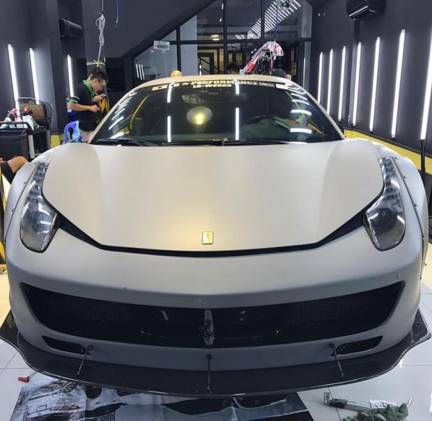 Gói độ Liberty Walk mà Ferrari 458 Italia đã thực hiện bao gồm body kit thân rộng và cánh gió cỡ lớn bằng carbon, phuộc hơi nâng hạ gầm Air Rex. La-zăng Forgiato đi kèm là lốp kích thước 'khủng' của Pirelli cùng với đó còn có 'khẩu pháo' FI. Chi phí cho quá trình độ này ước tính không dưới 1 tỷ đồng.