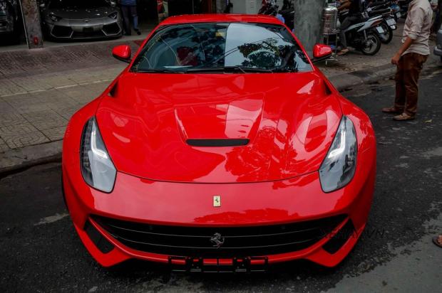 Trái với siêu phẩm đến từ Lamborghini, chiếc F12 Berlinetta được giữ nguyên các chi tiết bên ngoài. Xe về từ đầu tháng 7 năm 2016, trong “cơn lốc” siêu xe chạy thuế trước 1/7.