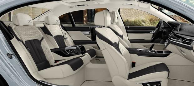 Di chuyển vào bên trong xe, BMW 7-Series Edition 40 Jahre có thể được làm đẹp với tùy chọn bọc da BMW Individual toàn bộ xe và trang trí hạt Merino trong màu Smoke White/Cohiba hoặc Smoke White/Black.