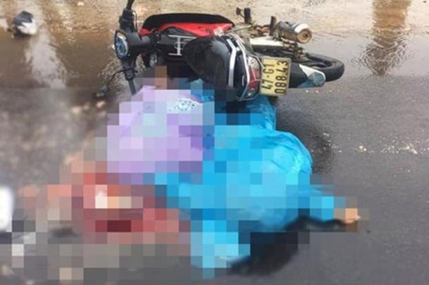 Cú va chạm làm vợ chồng ông Dình ngã ra đường thì bị bánh sau xe container cán qua người tử vong tại chỗ.