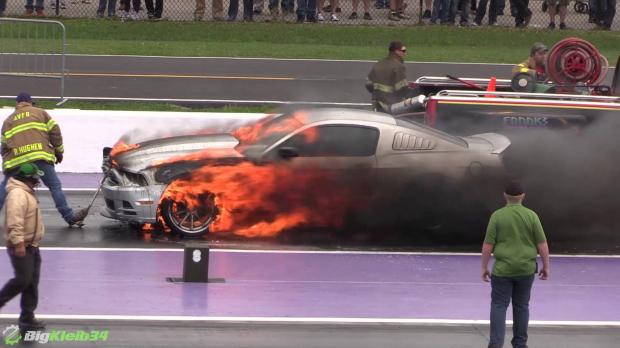 Siêu xe Mustang chưa kịp trổ tài đã cháy rụi