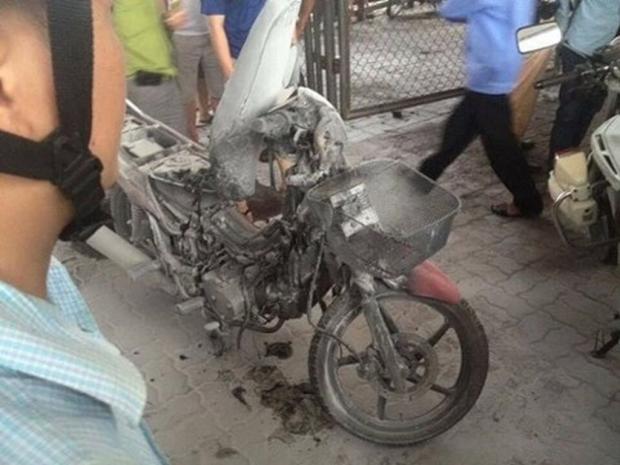Chiếc xe máy bị cháy trơ khung