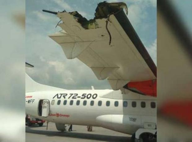 Hình ảnh cho thấy cánh máy bay ART của hãng Wings Air bị gãy rụng