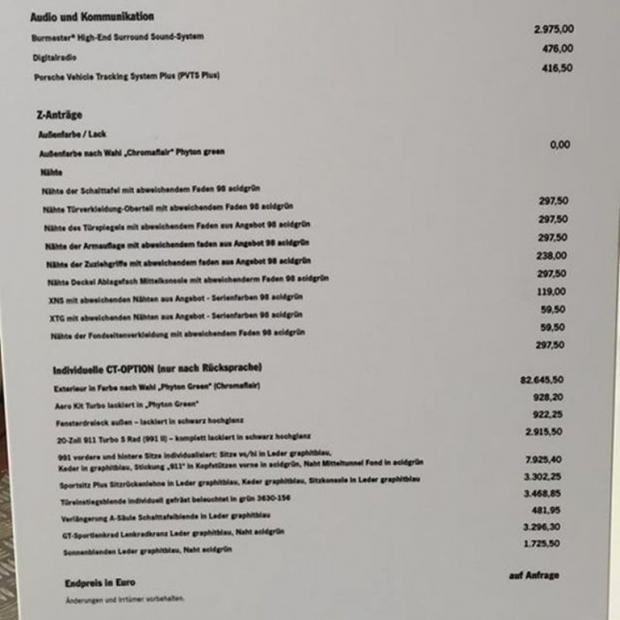 Tùy chọn màu sơn Python Green Chromaflair trên 911 Turbo S có giá là 97.689 USD (~ 2,2 tỷ VNĐ), thậm chí còn đắt hơn so với một chiếc 911 Carrera tiêu chuẩn. Con số này cũng vượt xa mức giá dành cho tùy chọn màu Liquid Metal Blue Chrome trên một chiếc Porsche 918 Spyder - 64.000 USD (~ 1,45 tỷ VNĐ).