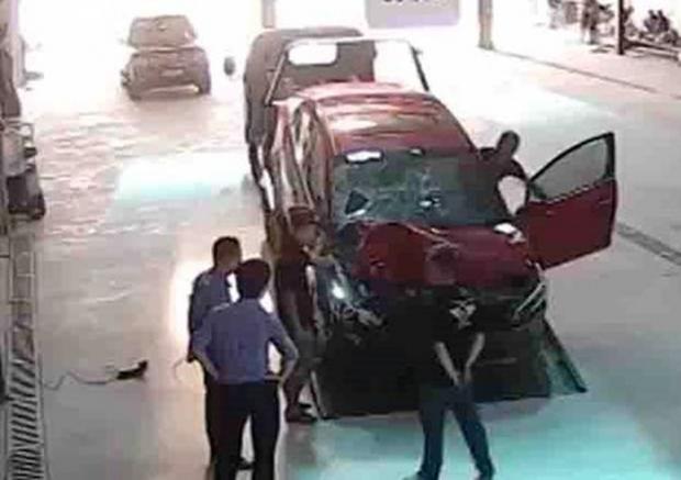 Sau khi gây tai nạn, Hiếu đưa xe đến garage để sửa (ảnh cắt từ clip)