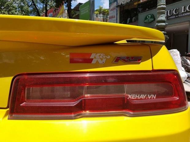 Chevrolet Camaro RS trong bài có màu vàng nổi bật, thân xe được tạo điểm nhấn bằng hai đường sọc đen mờ trên nắp ca-pô và nắp cốp sau trông rất thể thao. Phiên bản RS khác biệt so với bản thường ở bộ vành hợp kim 20 inch, cánh gió sau đồng màu với thân xe, đèn pha HID và đèn hậu LED.