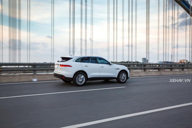 Chiếc F-Pace tôi trải nghiệm được trang bị la-zăng 19 inch nên độ êm ái là rất ấn tượng đối với một chiếc xe thể thao. Có lẽ la-zăng 22 inch sẽ khiến xe kém êm hơn một chút. Hệ thống dẫn động 4 bánh của F-Pace cũng có thiên hướng ưu ái cầu sau hơn nhiều so với các mẫu xe Land Rover, và đây là một điểm mấu chốt để tạo ra một chiếc crossover thực sự đem lại cảm giác lái thể thao. Ở điều kiện hoạt động bình thường, 90% lực kéo động cơ được truyền xuống hai bánh sau, chỉ 10% lên bánh trước. Điều này mang lại cảm giác 2 bánh trước vô cùng linh hoạt vì chúng gần như không phải chịu nhiệm vụ dẫn động, qua đó phản ứng với thao tác vô lăng của người lái nhanh hơn. Tất nhiên, hệ dẫn động 4 bánh của F-Pace vẫn có thể phân bổ lực kéo theo tỉ lệ trước/sau 50:50 hay thậm chí đẩy 90% lực kéo lên cầu trước nếu cần thiết.