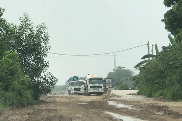 Đường bụi mù và lầy lội do xe tải trọng lớn thường xuyên chạy qua