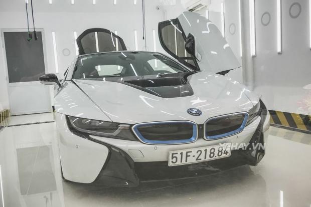 Cuối cùng là chiếc xe 'tai tiếng' BMW i8 được đỗ trong phòng 'VIP' của gara, siêu xe này từng bị 'tuýt còi' vì đỗ sai quy định vào tối ngày 9/8/2017 vừa qua.