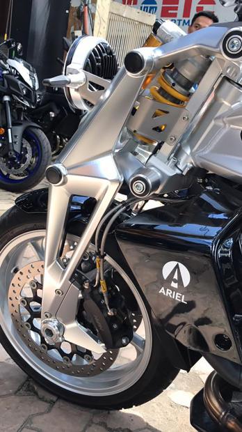 Bộ khung này được sơn màu theo ở thích của người mua. Phần đầu của xe nổi bật với cụm đèn pha Projector tròn theo phong cách cổ điển, cụm đồng hồ màn hình LCD kỹ thuật số có logo hình chữ A khá lớn của hãng Ariel.