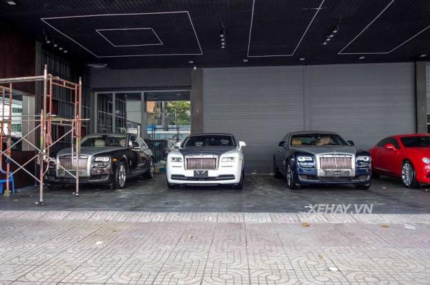 Ngoài cùng là dàn xe siêu sang Rolls-Royce với các mẫu Wraith và Ghost Series II. Wraith cũng từng làm mưa làm gió tại thị trường Việt Nam. Đặc biệt hơn cả, chủ nhân của thương hiệu cà phê Trung Nguyên cũng sở hữu 1 chiếc, sau khi sơn chiếc xe từ xanh sang trắng và dán thêm decal đen.