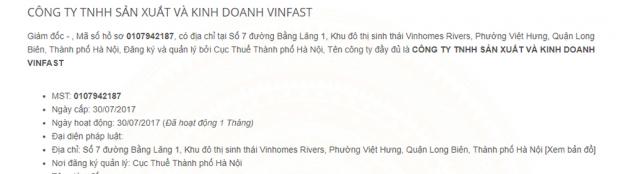 Vào cuộc họp Hội đồng hồi tháng 6 năm nay, Vingroup đã quyết định góp vốn 500 tỷ đồng vào Công ty TNHH sản xuất và kinh doanh Vinfast, chiếm 100% vốn điều lệ của công ty này. Trụ sở chính của công ty đặt tại Khu đô thị sinh thái Vinhomes Riverside (quận Long Biên, Hà Nội).
