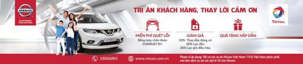 Tham gia chương trình này, khách hàng sẽ có cơ hội nhận được các ưu đãi như sau: Quét lỗi miễn phí bằng máy chẩn đoán chuyên dụng Nissan Consult III+; Giảm giá 10% thay dầu động cơ; Giảm giá 20% lọc dầu động cơ; Giảm giá 30% lọc gió động cơ; Quà tặng cho các khách hàng vào làm dịch vụ và có hóa đơn trên 1,000,000 VND (chưa bao gồm VAT).