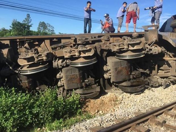 Hiện trường tàu SE3 va chạm máy xúc tại Quảng Bình bị trật bánh, đổ nghiêng