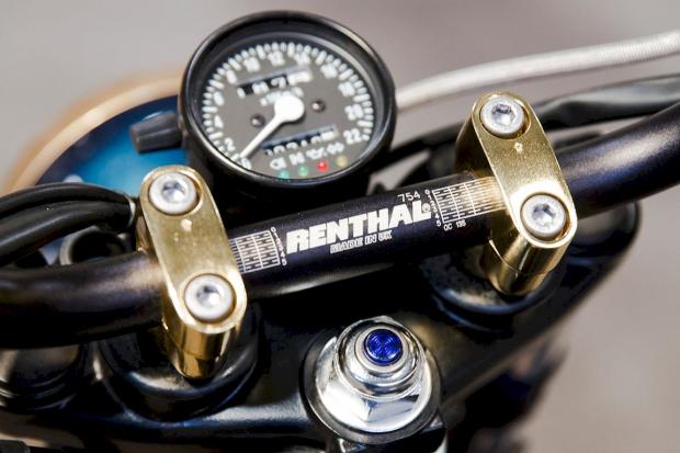 Cùng với vài thay đổi nhỏ về màu sắc như khung xe được sơn màu xanh thẫm với ánh kim, điểm nhấn là những đường kẻ nhỏ màu vàng đồng trải dài khắp thân xe, chiếc SR400 đã được biến hóa thành một quý ông lịch lãm với bộ suit xanh cùng cà vạt vàng.