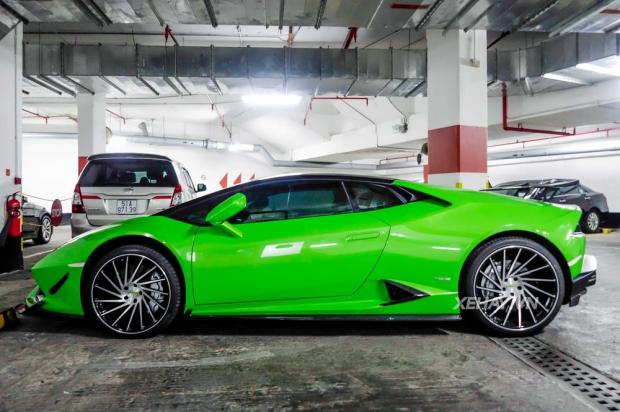 Tuy nhiên, hốc gió bánh trước được loại bỏ trên phiên bản Việt Nam. Ngoài ra, chiếc Huracan còn được độ thêm ống xả FI hàng hiệu.