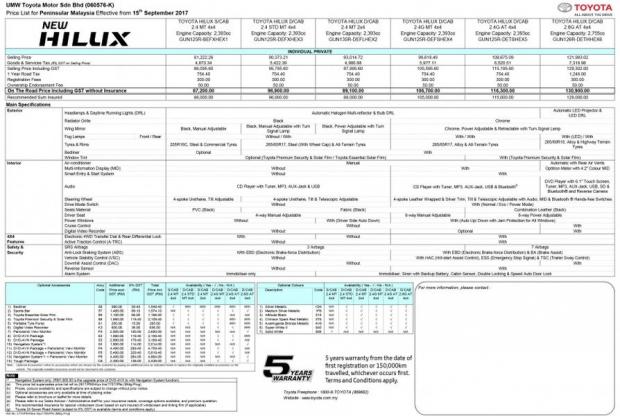 Các biến thể được liệt kê dưới đây (Single Cab 2.4 MT 4×4 giá 87.200 RM - khoảng 473 triệu VNĐ, 2.4 STD MT 4×4 có giá 96.900 RM - khoảng 526 triệu VNĐ, và 2.4 MT 4×2 giá bán 89.100 RM ~ 484 triệu VNĐ) đều gần như không có sự thay đổi trong lần cập nhật này.