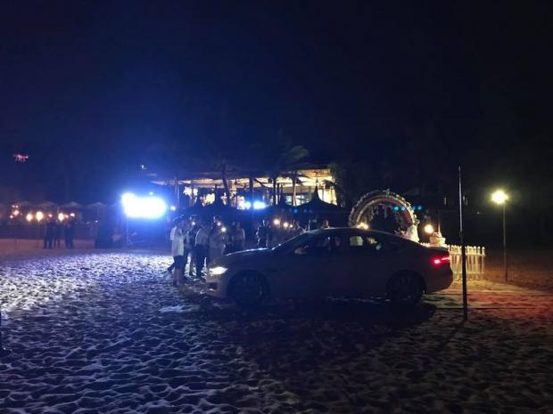 Anh đã dành cả ngày để chuẩn bị cho buổi lễ kỉ niệm quan trọng. Để đưa được món quà cầu hôn là chiếc Jaguar XF mới ra tận bãi biển, nhiều tầm ván đã được ghép lại để xe vượt qua được bãi cát.