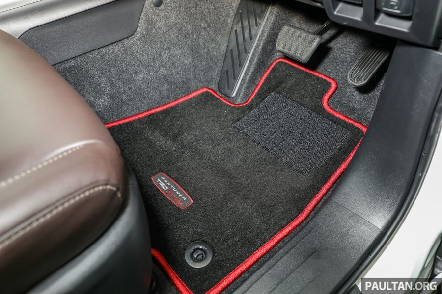 Quay trở lại với chiếc 2.4 VRZ 4×2 đặc biệt trong bài viết này, chiếc SUV mới được áp dụng gói độ thân xe chính hãng TRD Sportivo (4.982 RM ~ 26 triệu VNĐ), gói tùy chọn này gồm có bộ thân xe khí động học, lưới tản nhiệt màu đen, biểu tượng, các sọc thân xe, thảm sàn đặc biệt và tấm kim loại độc quyền.