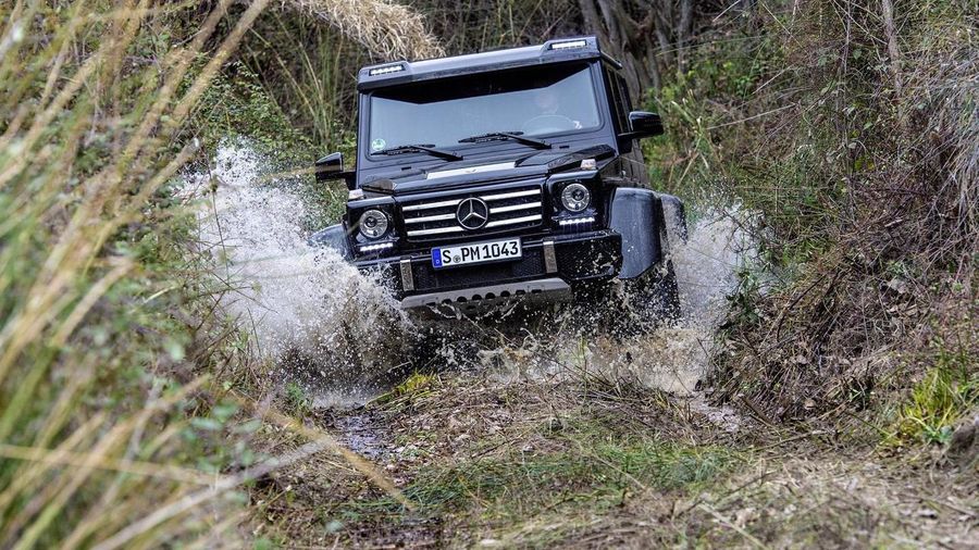 Với cấu trúc trục lệch tâm (portal axle – tâm bánh xe nằm phía dưới trục) và khoảng sáng gầm xe được nâng lên tới 450mm, cỗ máy off-road cực đỉnh của Mercedes-Benz có thể chinh phục được bất cứ bề mặt địa hình nào. Đặc biệt, G500 có khả năng lội nước siêu ấn tượng, sâu tới 1.000 mm.