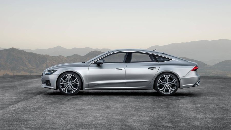 Các đường gân trải dài trên nắp ca-pô, thậm chí lượn qua các vòm bánh xe trước tiếp tục cho thấy sự năng động về thiết kế của xe. Giống như mẫu xe tiền nhiệm, Audi A7 sở hữu một tấm mái cong quyến rũ, có xu hướng dốc hơn về phía sau, cùng cánh gió thông minh được tích hợp vào đuôi xe - tự động nâng lên khi tài xế tăng tốc trong vận tốc trên 120 km/h.