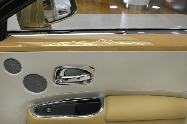 Chưa hết, chiếc Rolls-Royce Ghost đặc biệt còn được bổ sung những mảnh gỗ Piano Veneer đắt tiền, đi kèm các miếng trám được đúc bằng trên bảng táp-lô phía ghế hành khách phía trước và ở thành trên của các tấm ốp cửa.