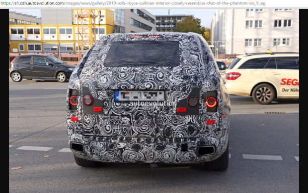 Chiếc xe thử nghiệm xuất hiện với ngụy trang kín mít, nhưng vẫn dễ dàng để lộ các cửa sổ chia sẻ từ người anh em ba khoang. Xét về thiết kế, từ việc chia sẻ nhiều điểm chung với Phantom, chắc chắn Cullinan sẽ là một đề xuất hấp dẫn hơn so với mẫu SUV cỡ lớn tương lai của BMW - đó là X7, được dự kiến bắt đầu sản xuất vào năm 2018.