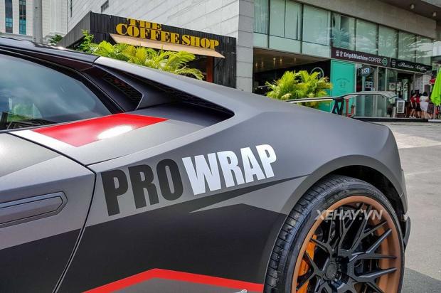 Chiếc Huracan này nguyên bản có màu cam và độ lại cánh gió của hãng Vorsteiner. Bộ tem vừa được dán, lấy cảm hứng từ nguyên bản những mẫu xe đua chính hãng Huracan Super Trofeo.