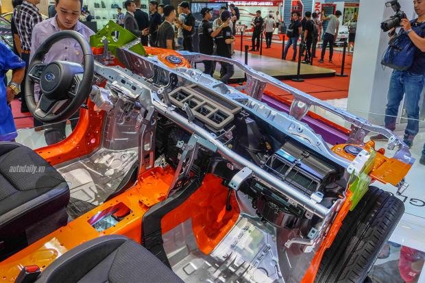 Đây là lần thứ hai tham dự Triển lãm Ô tô Quốc tế Việt Nam, bên cạnh việc giới thiệu mẫu xe XV mới, Subaru đã tận dụng không gian trưng bày ấn tượng để “khoe” chuẩn khung gầm mới với nhiều cải tiến vượt trội, và sẽ được áp dụng lên tất cả các mẫu xe Subaru trong tương lai.