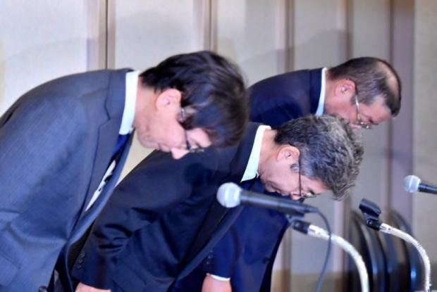 Lãnh đạo Kobe Steel cúi đầu xin lỗi tại một cuộc họp báo sau khi hãng này thừa nhận làm giả dữ liệu