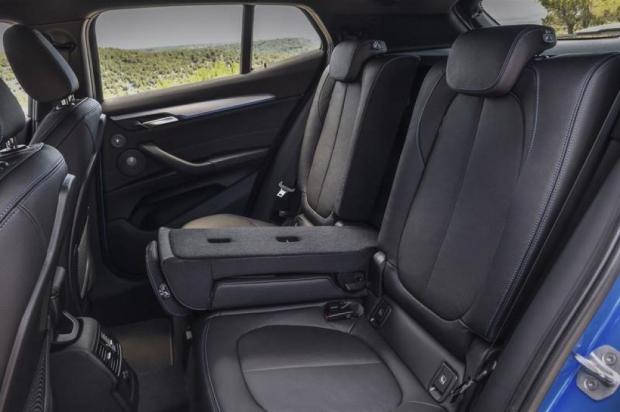 Phía sau xe là kính chắn gió được thiết kế dốc và cửa sổ nhỏ gọn. Phần nóc của BMW X2 dốc về phía sau và kết thúc bằng cánh gió mui. Xe có đường viền cửa sổ nổi bật, đèn hậu LED và logo BMW trên cột C. BMW X2 có nhiều tùy chọn la-zăng khác nhau với đường kính dao động từ 17-20 inch.