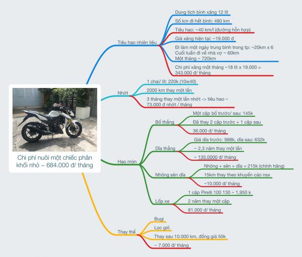 Như vậy, tổng chi phí để nuôi một chiếc xe 150cc rơi vào tầm: 684.000 đồng/ tháng. (tùy theo điều kiện vận hành, cách chạy xe mà chi phí này có thể tăng lên hoặc giảm đi). Nếu quy ra thì nuôi một chiếc xe mô tô cỡ nhỏ là bằng 19 ly trà sữa (35k/ ly), mong rằng chia sẻ của mình sẽ giúp các bạn sinh viên đam mê xe thuyết phục được gia đình, các bạn nam thuyết phục được vợ để sớm tậu được cho mình một chiếc xe như ý.