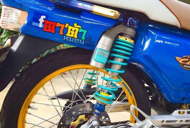 Phuộc Nitron bình dầu cho độ nhún êm ái hơn cũng như tăng độ thẩm mỹ cho xe với lò xo phuộc màu xanh nitron mát mắt .