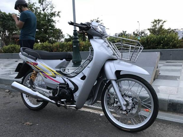 Tăng thêm tính tiện ích cho chiếc xe độ của mình, chủ xe đã trang bị rổ trước 10 ly trên nền mặt nạ 3 lỗ. Ngoài việc giúp chủ xe có thể bỏ các đồ dùng cần thiết vào thì còn dùng để làm kiểng cho giống phong cách xe thái