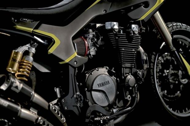 Ngoài ra, xe cũng được trang bị các bánh xe không rãnh 19 inch với những lốp xe dạng khối, đem tới tính xác thực và kiểu dáng tổng thể cho chiếc Rossi Special này, theo sau các dòng xe đua địa hình phẳng TZ750 của Yamaha.