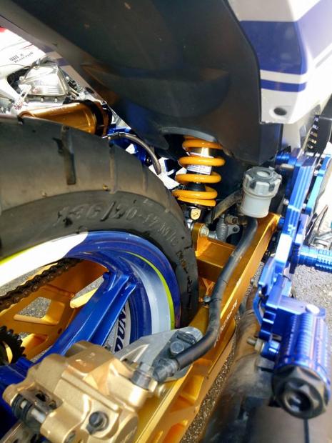 Vẫn giữ giữ cho mình gác chân trước zin, chủ xe muốn hại não người xem bằng việc lắp thêm số gãy Shark power, cacte Racingboy