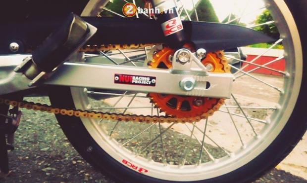 Dàn chân trước khá hầm hố với dây dầu Earl's, heo dầu Racingboy 2 pis được cố định bằng ốc Proti, đĩa kiểu phong cách Brembo, chụp cốt cnc