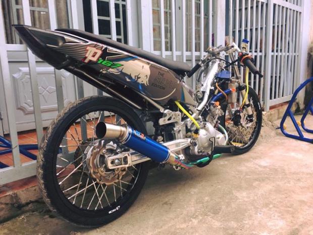 Ghi đông xe độ lại theo phong cách Clip-on với tay lái hạ thấp và gấp vào trong cho dáng ngồi chồm như những xe SportBike, cùm tăng tốc Banjing cho hành trình dây ga ngắn tăng tốc lẹ hơn, tay thắng kiểu Brembo cùng bình dầu rời Faito, dây dầu Morin, heo dầu kiểu phay logo Brembo, đĩa Galfe + lòng đĩa cnc, vỏ phuộc trước đã phay cho nhỏ lại giúp xe giảm trọng lượng cũng như hợp hơn với dàn áo. Trái tim của xe được nâng cấp với bình xăng FCR đồ chơi họng 41, lòng cnc trái nén Fin 62mm...