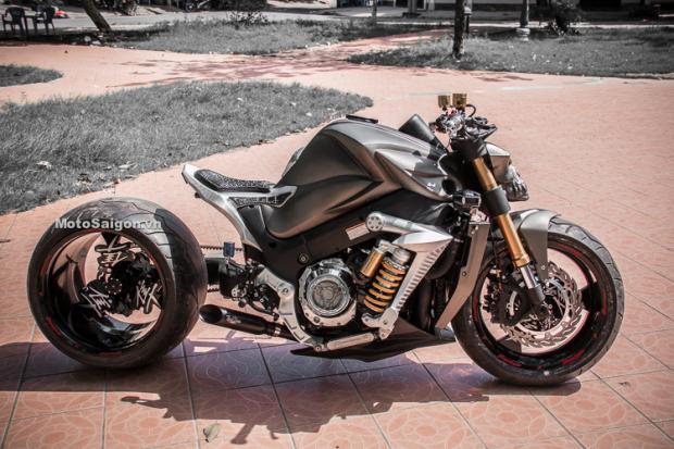 Hayabusa độ bánh béo (to) kết hợp phuộc kéo đầu tiên Việt Nam. Đây là tác phẩm mới nhất của xưởng độ xe sáng tạo Motor Phi Long tại TPHCM.