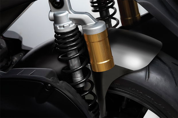 Bên cạnh việc có thêm bộ áo mới, NVX 155 ABS cũng được trang bị cặp phuộc sau hoàn toàn mới với bình dầu. Phuộc sau đôi mới này có kích cỡ lò xo lớn hơn cùng bình dầu, vừa tăng tính thẩm mỹ đồng thời nâng cao khả năng vận hành, nhằm mang lại sự êm ái và thoải mái nhất cho người ngồi.